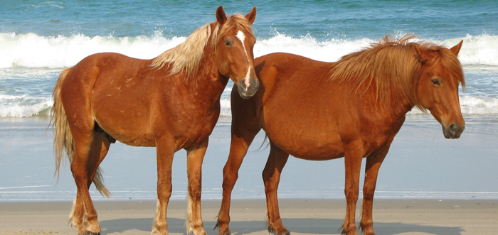 Wild Spanish Mustangs, deserted beaches and a glimpse of the Outer Banks was like before it was developed greet visitors to the Carova area of the the Currituck Banks. There are no roads north of Corolla, so knowing how to drive on the beach is a must. Here, Currituck County Tourism shares their list of tips on driving on a beach safely with horses and visitors present. While written specifically for the northern beaches, these tips will serve you well in any 4WD situations on the OBX.