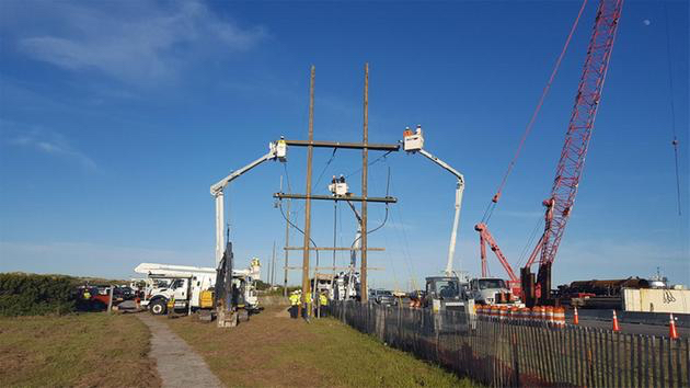 Transmission power has been restored to all of Hatteras Island and Ocracoke Island. Cape Hatteras Electric Cooperative and contracted crews completed all work to construct the new overhead transmission line near Oregon Inlet and have energized the cable. Each of the seven villages on Hatteras Island have been removed from generator power and are now receiving power from the cooperative’s transmission lines.