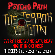 “Prepare to be terrified. What are your deepest fears? What makes you cringe? Creatures, maniacs, zombies, and disembodied spirits all roam the desolate and deserted Fort Raleigh National Park. This autumn make plans to brave the haunted trail for an all new PsychoPath, every Friday and Saturday evening in October. PsychoPath, ‘The Terror Within’ returns to the Waterside Theatre, home of The Lost Colony. With added scares and new special effects, PsychoPath 2015 is nothing like you have ever encountered before.