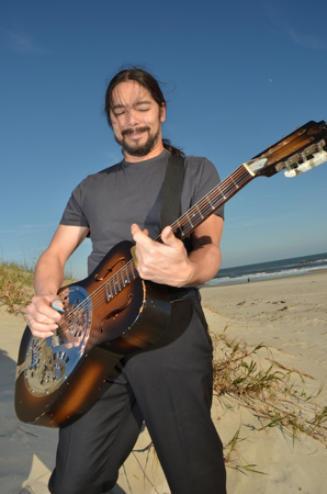 On stage he has an array of instruments. Not just the electric, acoustic, slide or steel guitar, but the electric bass and dobro.