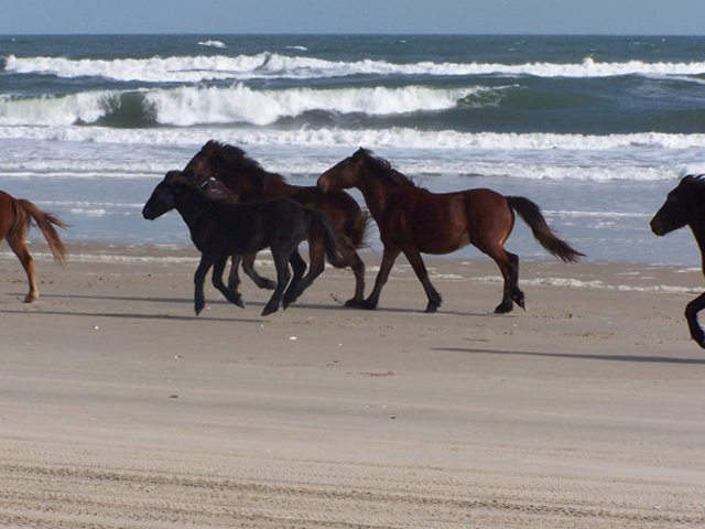 We were on a quest to see the area’s famed wild horses, and our otherwise trusty Jeep had gotten stuck in the sand. After a half-hour of digging, sans shovel, and narrowly escaping electrocution, a tow truck appeared without us ever having called for one. It was a miracle — or perhaps economic opportunism at work. (Along this drivable stretch of beach, you can make a killing rescuing forlorn cars.) Caked with sand and defeat, we were a laughable sight to the better-rigged SUVs that drove past. But the spectacle we had created was worth it, since we got to witness another in exchange: one of only two remaining wild herds of Colonial Spanish Mustangs left in the world, freely roaming the beach, unfazed, backs turned toward the wind.”
