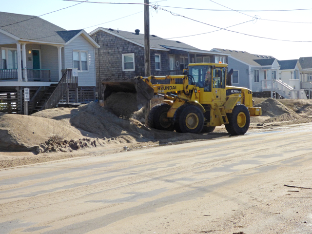 Back hoes and road graders are traveling along the north end of the Beach Road in Kitty Hawk, one of the areas most in need of beach nourishment. Dune lines are flattened in some places where the ocean pushed across the road.