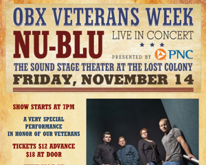 Great music for a great cause! Check out Nu-Blu at the Lost Colony’s Soundstage Theatre this Friday evening! It’s all part of Veterans Writing Weekend sponsored by the Dare County Arts Council, local businesses and the Outer Banks Visitors Bureau. On Friday, November 14th at 7pm, The Lost Colony, the Dare County Arts Council, and… Continue reading nu-blu hits the lost colony stage friday