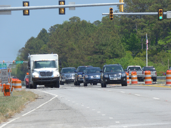 However, only 2/3 or the span has been resurfaced, and according to Jennifer Garifo, Communications officer for NCDOT, the remaining work–including repaving the western third of the bridge and finishing work on the expansion joints will be completed after the summer season. Construction is scheduled for mid September to mid May.”